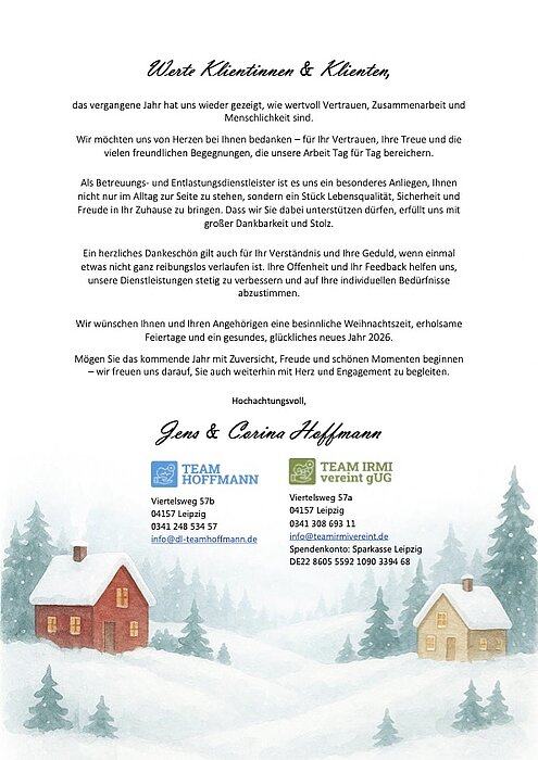 Außerdem haben wir immer ein offenes Ohr für Ihre Sorgen und Ängste, auch wenn mal Tränen fließen.